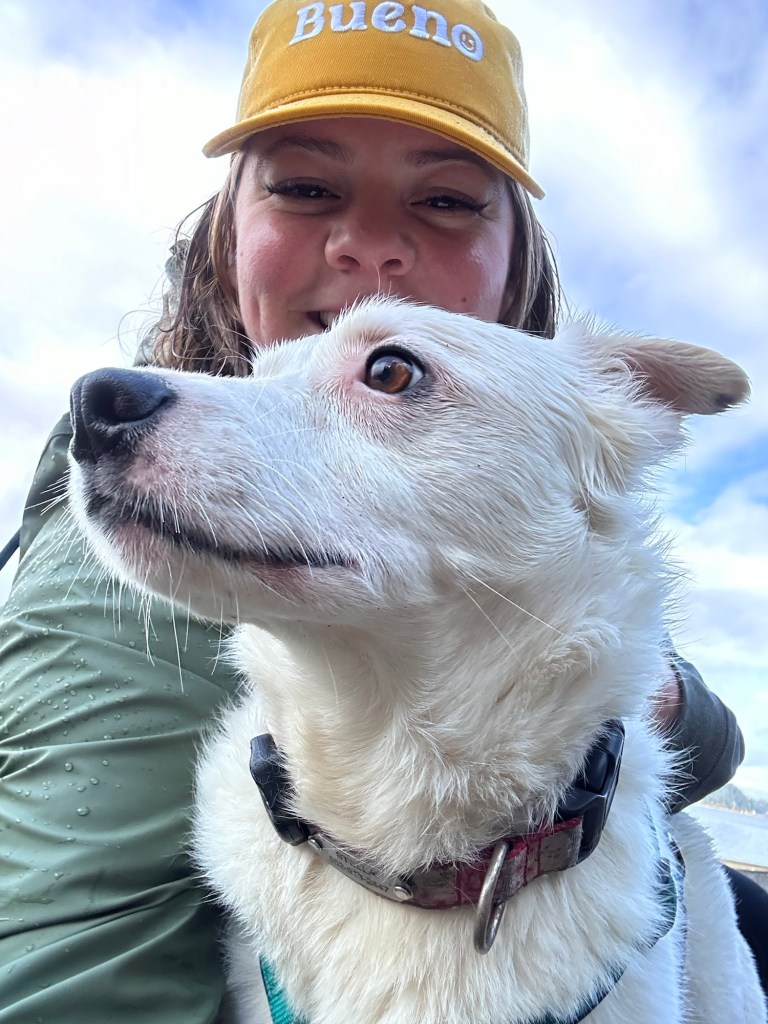 Stella and I found the beach, and it was perfection. There wasn’t a soul in sight, so yes, I went a little rogue and let her off leash (I know, rebel nurse over here). She was ecstatic, nose down in the sand, completely uninterested in my attempts to snap some cute selfies. Classic Stella.